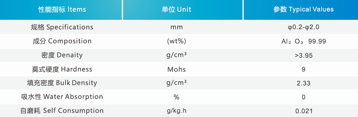 氧化鋁微珠/球具備磨耗小、硬度高、耐腐蝕、抗沖擊、經濟實用等特性,是常用的精細球狀研磨介質。